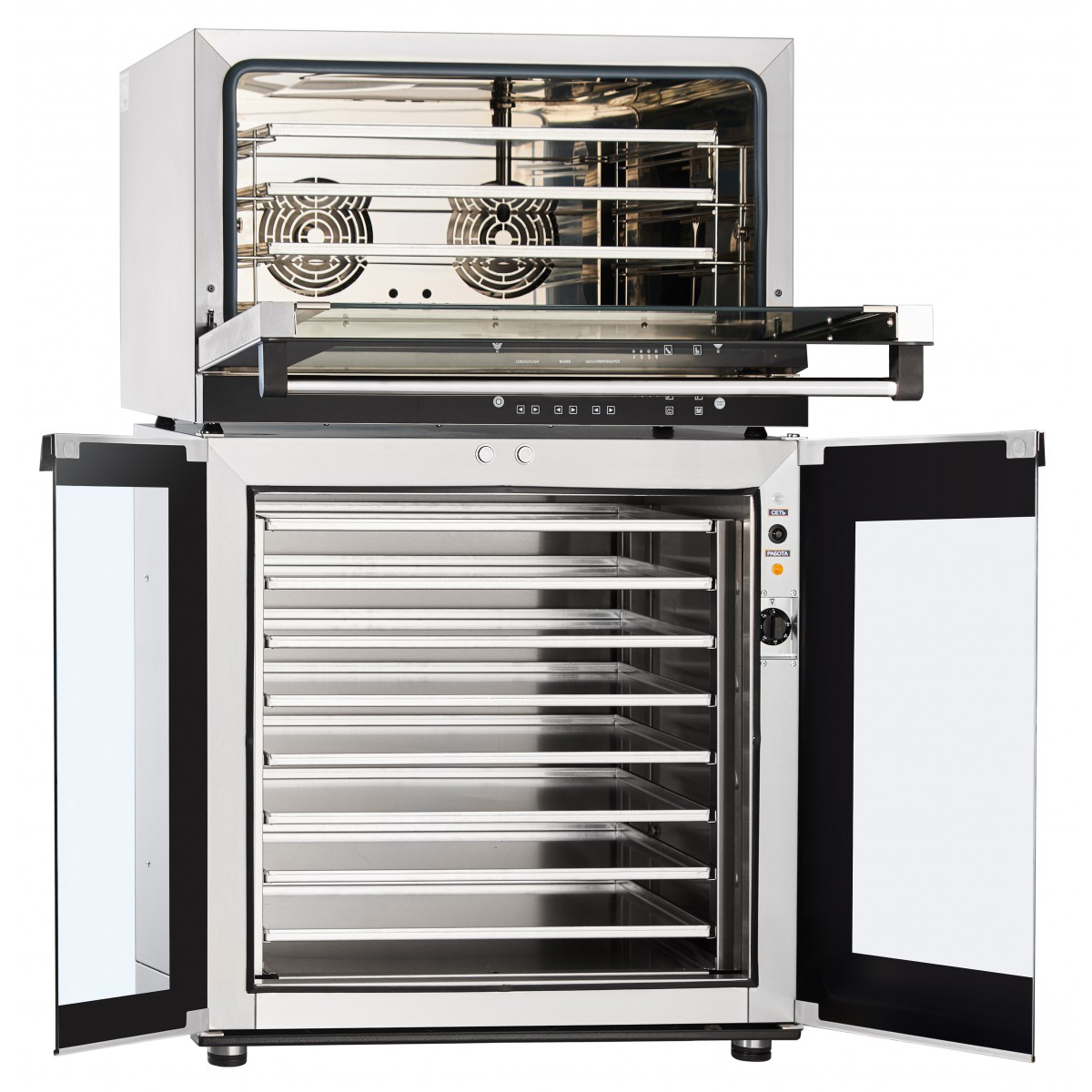 Устанавливается на шкаф расстоечный ШРТ-8 или самостоятельно. Приготовление может осуществляться как в программном, так и в ручном режимах.