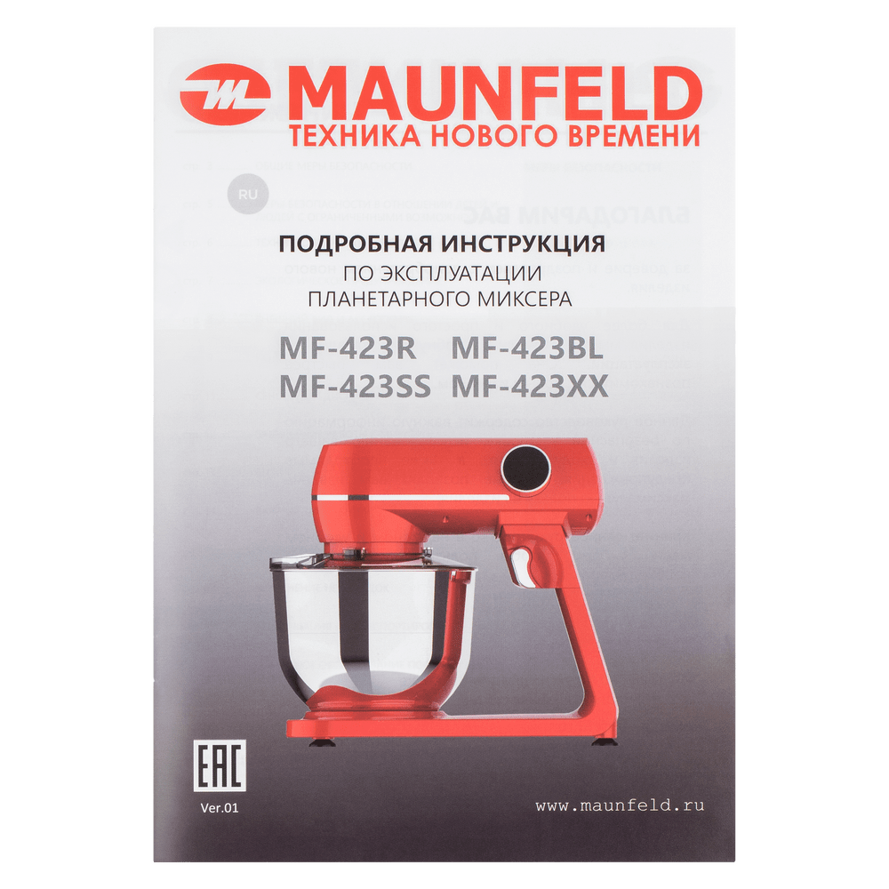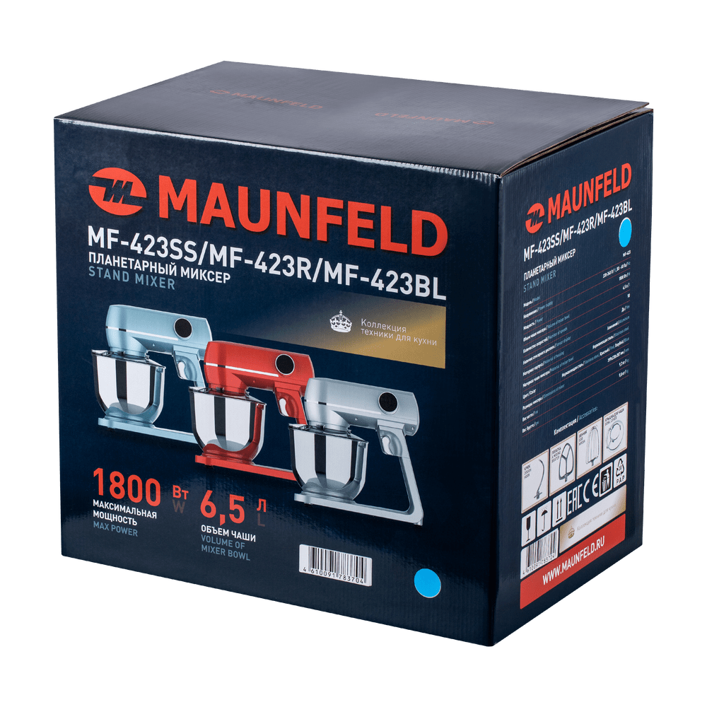 Планетарный миксер MF-423 мощностью 1800 Вт с LED дисплеем и тремя насадками.