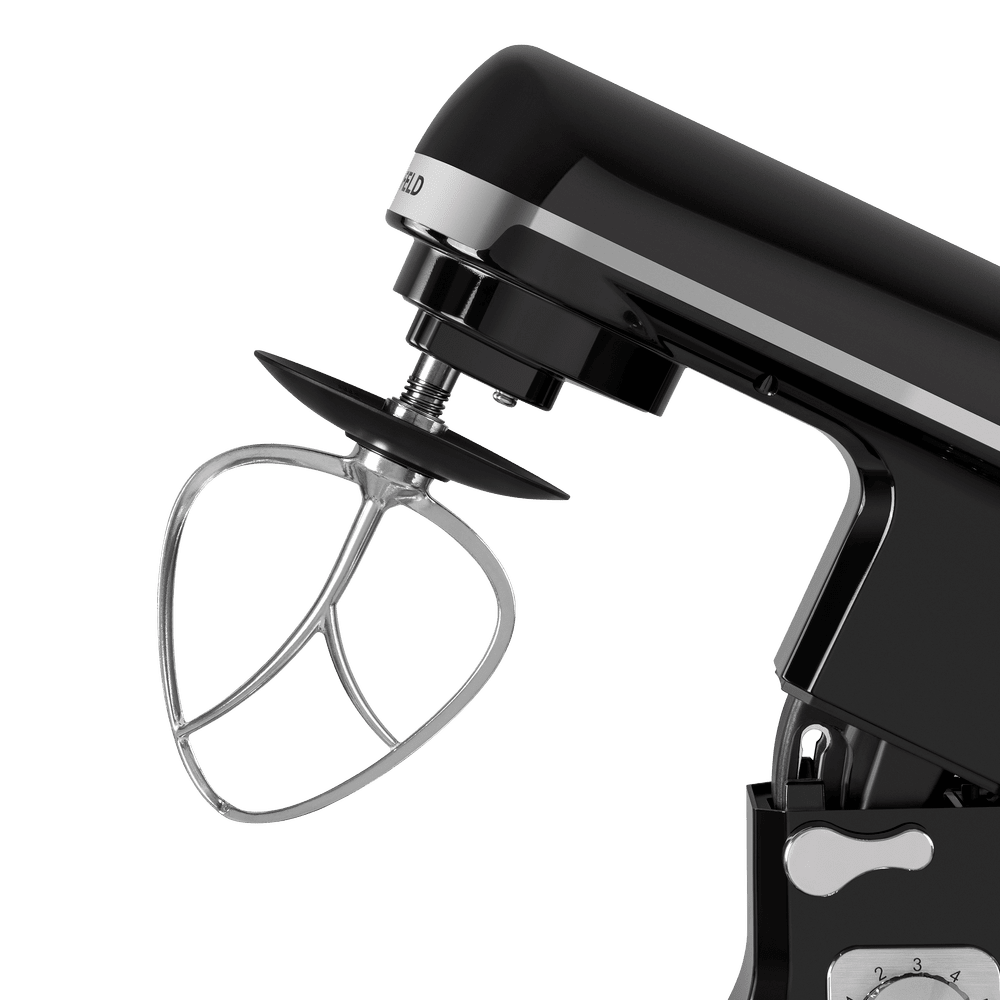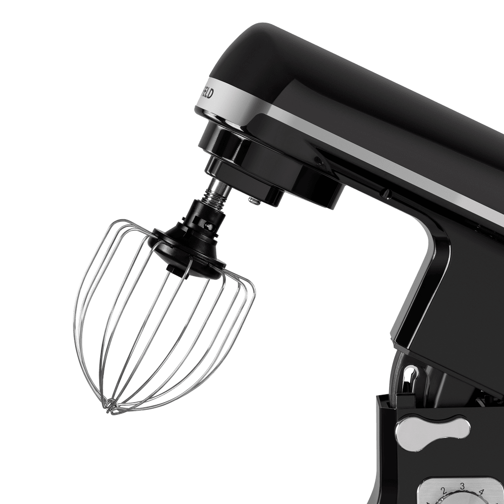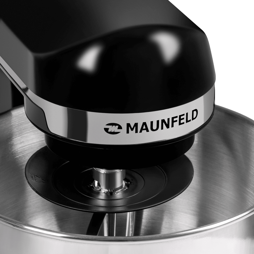 Планетарный миксер MF-431 мощностью 1000 Вт с пятилитровой металлической чашей и тремя насадками.