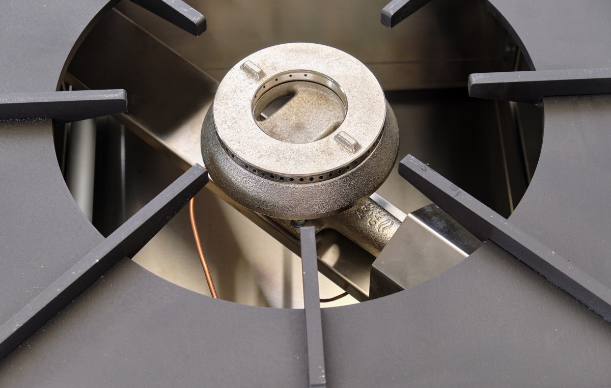 Плита имеет пьезоподжиг, газ-контроль и может работать на природном и сжиженном газе. Имеет регулируемые по высоте ножки.