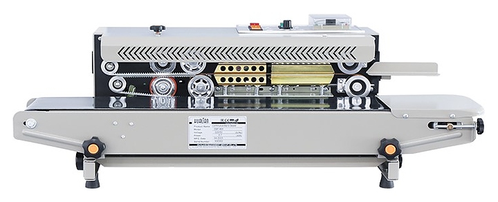 Роликовый запайщик пакетов Hualian DBF-900 LOW COST используется на производственных площадках, предприятиях пищевой промышленности, общественного питания и торговли для непрерывного запаивания пакетов из различных термосвариваемых материалов, включая пакеты типа «дой-пак» в горизонтальном положении. Модель оснащена механической панелью управления. Корпус выполнен из нержавеющей стали.