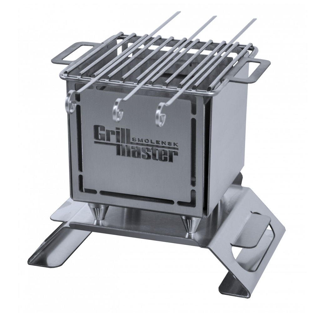 Комплектация: подставка, 3 шампура, решётка для жарки и специальные крюки-съёмники
