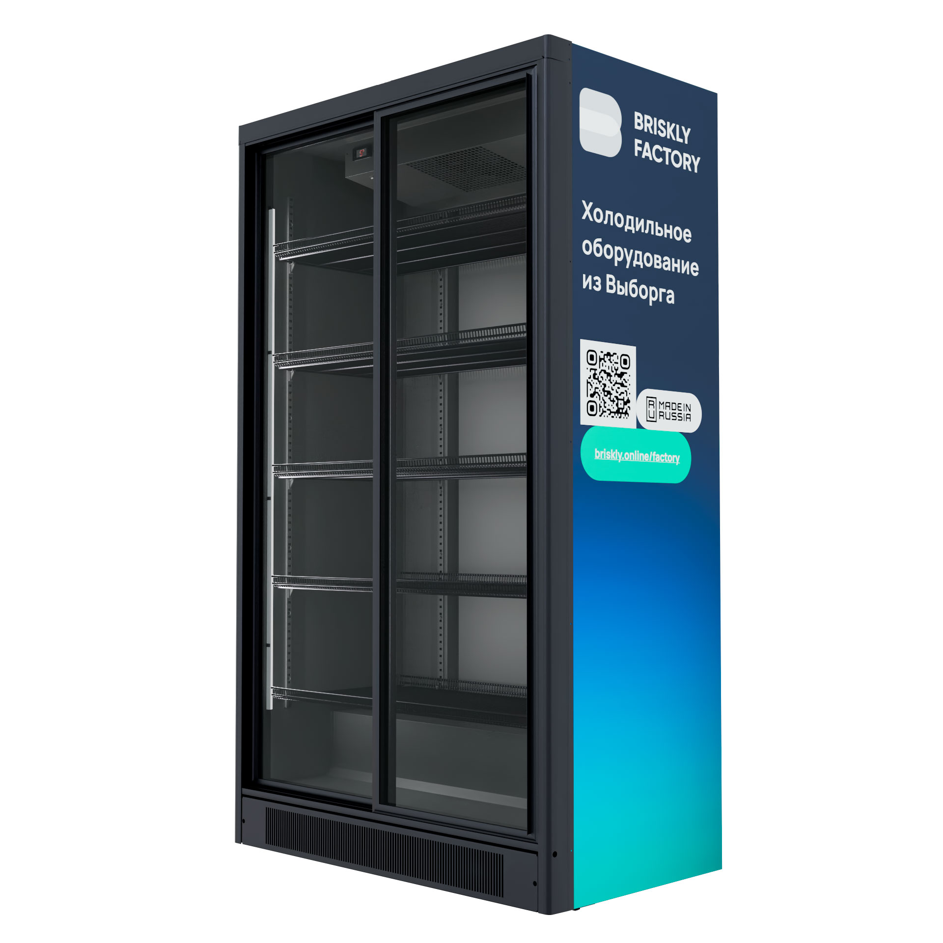 Двухдверный холодильный шкаф Briskly Smart 11 Slide со стеклянными раздвижными дверьми. Выполнен из крашеного металла, обрамление стеклянных дверей — из алюминиевого профиля. Стандартное исполнение включает в себя белый цвет корпуса (RAL 9003). Возможно исполнение в графитовом цвете RAL 7024.