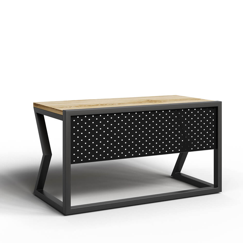 Стол письменный Хотколд в стиле лофт выполнен в оригинальном исполнении - на металлической опоре с зигзагообразной формой.