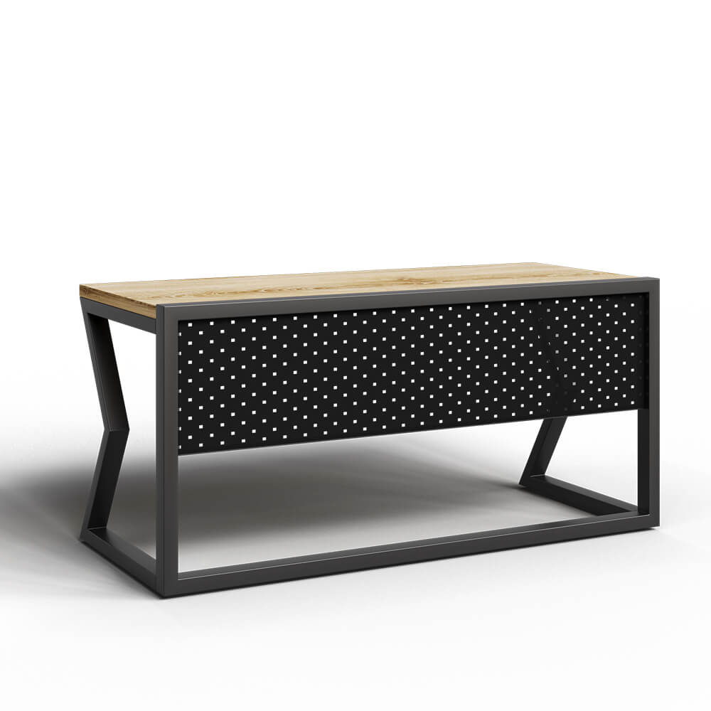 Стол письменный Хотколд в стиле лофт выполнен в оригинальном исполнении - на металлической опоре с зигзагообразной формой.