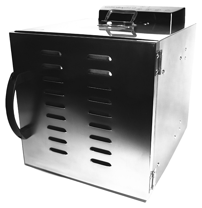 Процесс дегидрации заключается в длительном, непрерывном обдуве продукта теплым воздухом. В корпусе аппарата расположены специальные термовыводящие отверстия, обеспечивающие эффективный воздухообмен и вывод влаги из рабочей камеры.