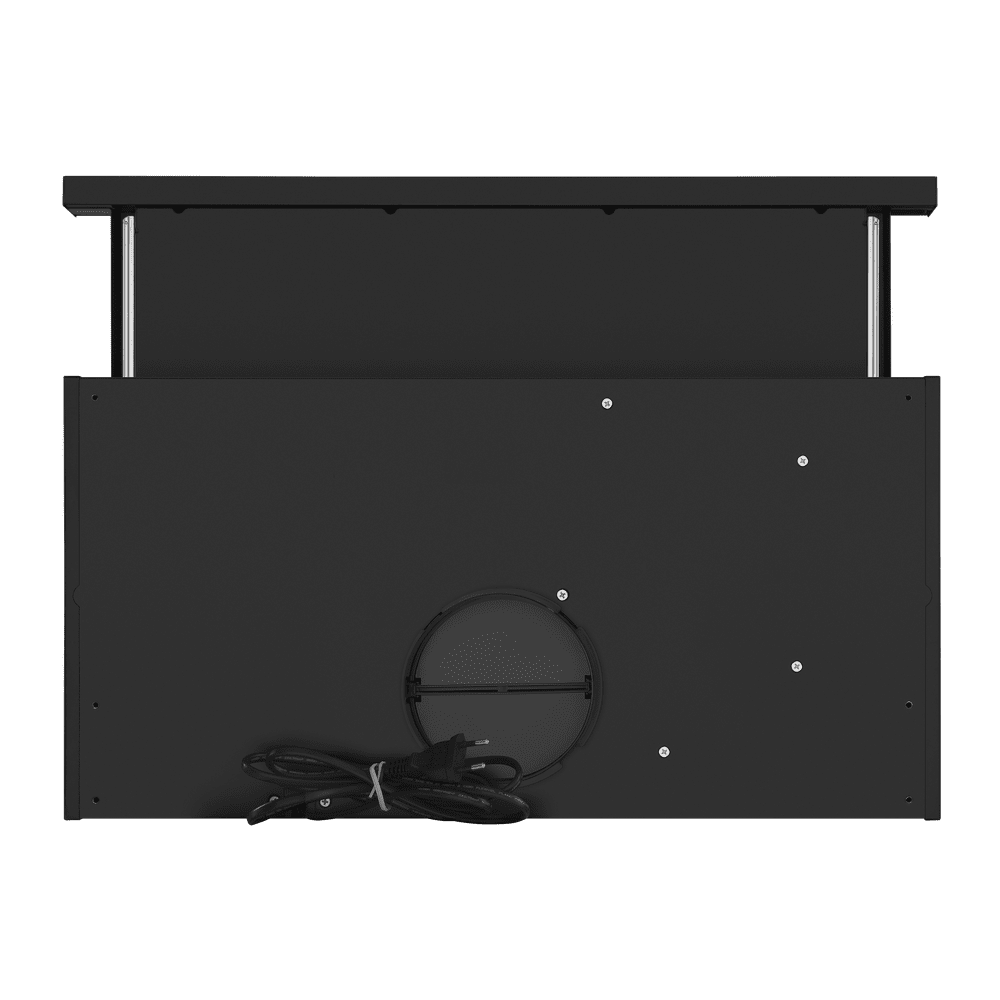 - Фасад выдвижной панели из закалённого стекла выполнен в цвет корпуса