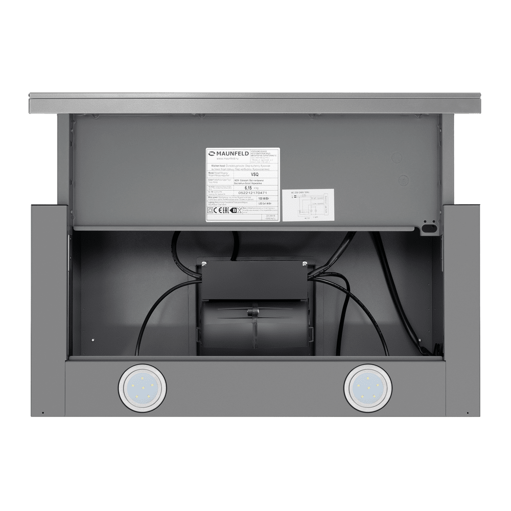- Воздуховод имеет диаметр 150 мм и оснащён антивозвратным клапаном, что не позволяет попадать запахам обратно в кухню