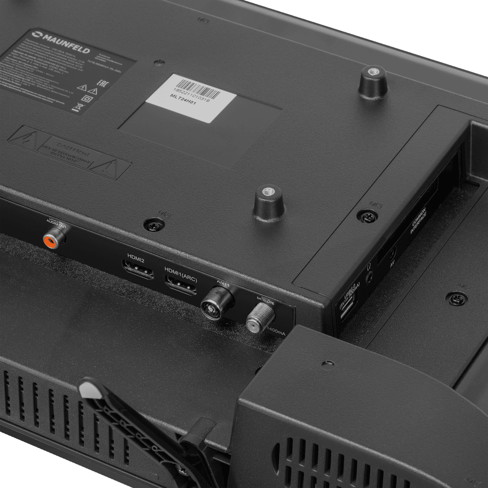 Телевизор MLT24H01 с диагональю 24 дюйма, широкоформатный экран 16:9, разрешением HD и технологией Dolby Digital.