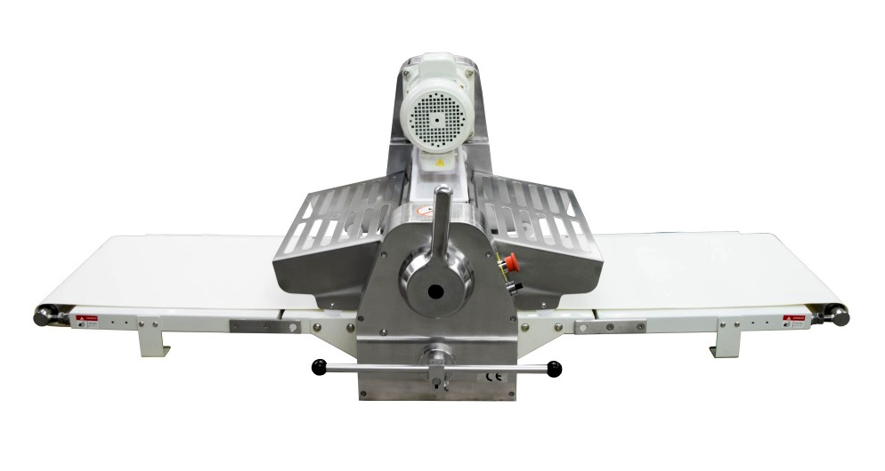 Корпус из алюминия. Интервал регулировки толщины раскатывания 1-35 мм. Пластиковый скребок на каждом валу для поддержания чистоты валков в процессе раскатывания. Полотна конвейера размером 43*170 см из нетканого полимерного материала с регулируемыми натяжителями.