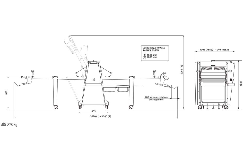 Полуавтоматическая тестораскаточная машина. Сенсорный дисплей 4,5”, 50 рабочих программ с программированием скорости и открытия цилиндров. Изменение направления движения во время рабочего процесса посредством кнопок с электрическим импульсом и педали. Защитные покрытия цилиндров оборудованы микровыключателем безопасности и газовой пружиной. Система быстрого натяжения и открепления лент. Скребки с системой быстрого открепления QR® (Quick Release). Поддон для сбора муки оборудован микровыключателем безопасности.