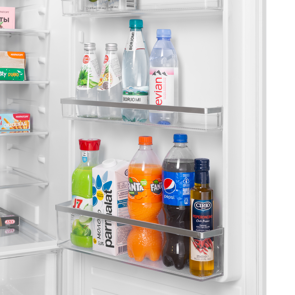 - Встраиваемый холодильник с организованным внутренним пространством для хранения разных видов продуктов