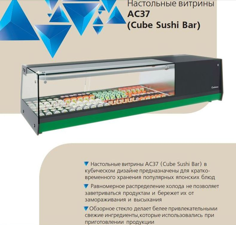 Следуя современным тенденциям в оформлении торгового пространства Компания POLUS выпустила в серийное производство настольные витрины АС37(Cube Bar) и AC37(Cube Sushi Bar) в кубическом дизайне.