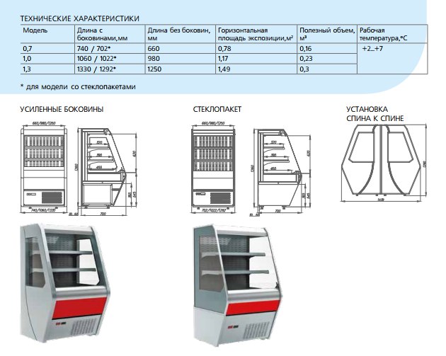 Данная линейка расширена витринами с боковыми стеклопакетами для лучшей обзорности товара и усиленными боковинами (полистирол с ППУ-изоляцией со стеклопакетами).