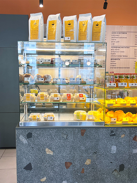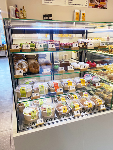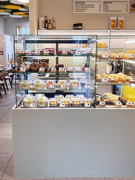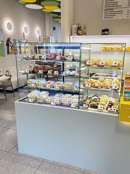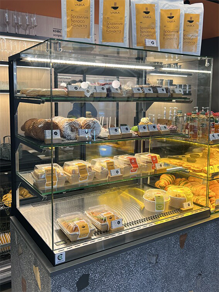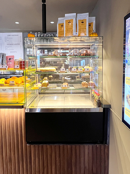 - Эстетичный дизайн. Витрины прекрасно вписываются в интерьер кофеен, подчеркивая стиль заведения и привлекая внимание клиентов.